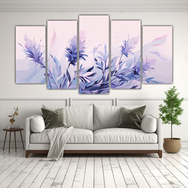 DecoCuadros te presenta el cuadro floral Cinco Artes en colores pastel con ambiente neonoir neo pop Impreso en tela de alta calidad con bastidor de madera, este cuadro es perfecto para darle vida a tu hogar u oficina Los colores beige, azul marino grisaceo, lila, gris y turquesa se combinan de manera armoniosa y elegante, creando una atmósfera única
