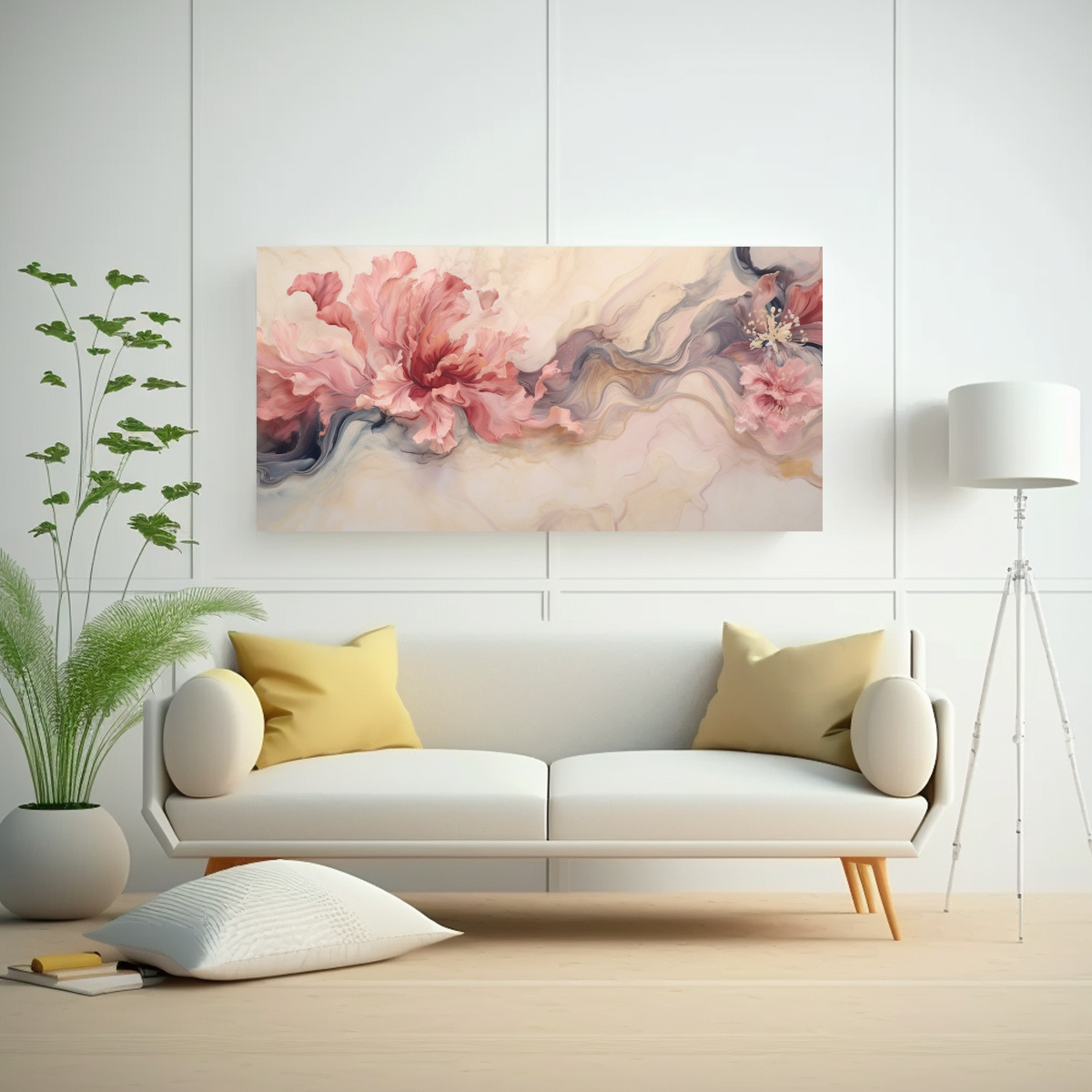 Pinturas De Decoración Floral Con Textura De Mármol Y Paisaje De Viento