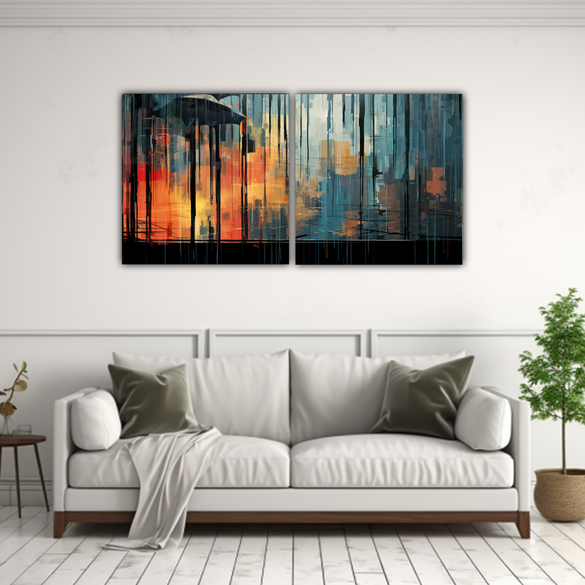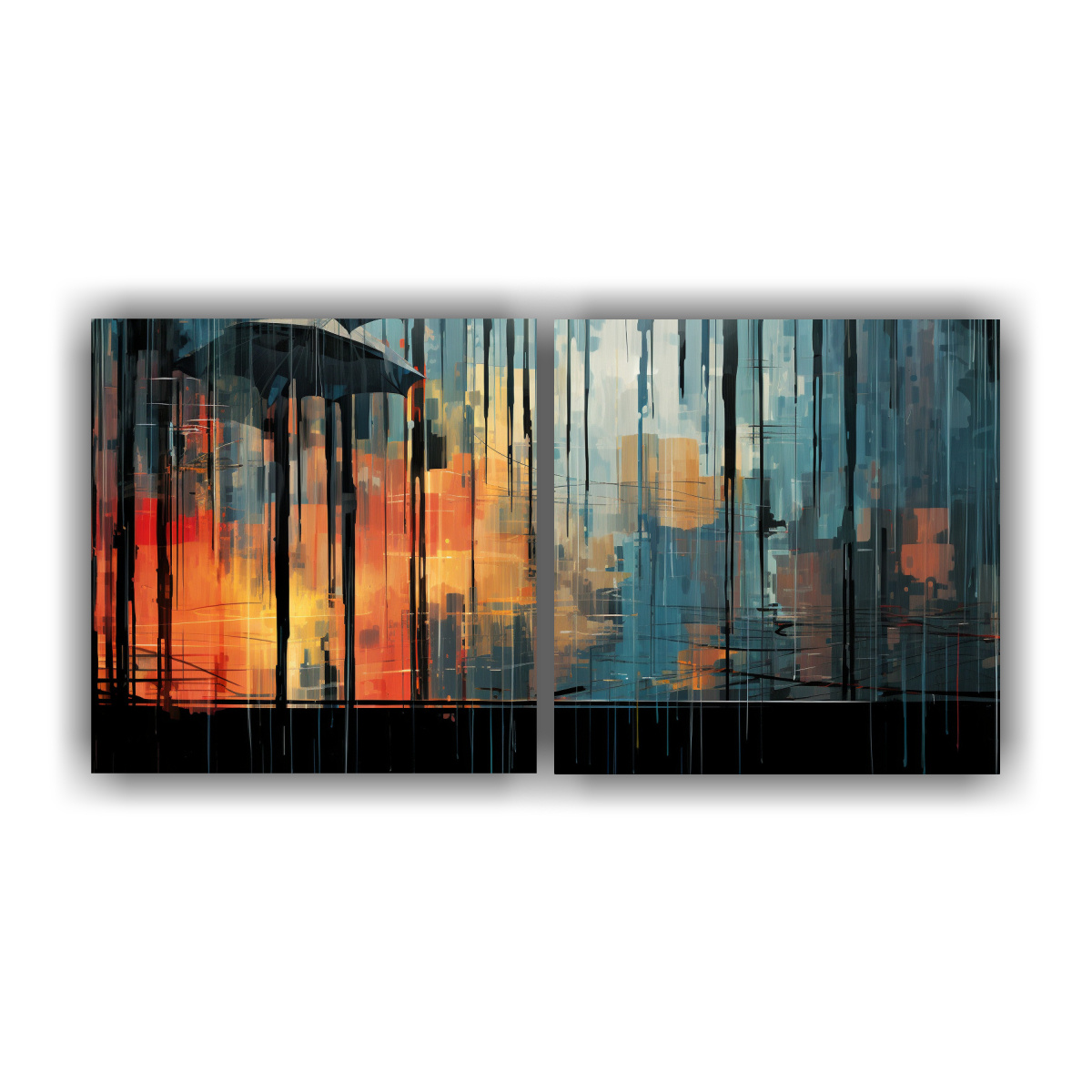 Pinturas De Decoración Set 2 Composiciones Modernas De Un Día Lluvioso