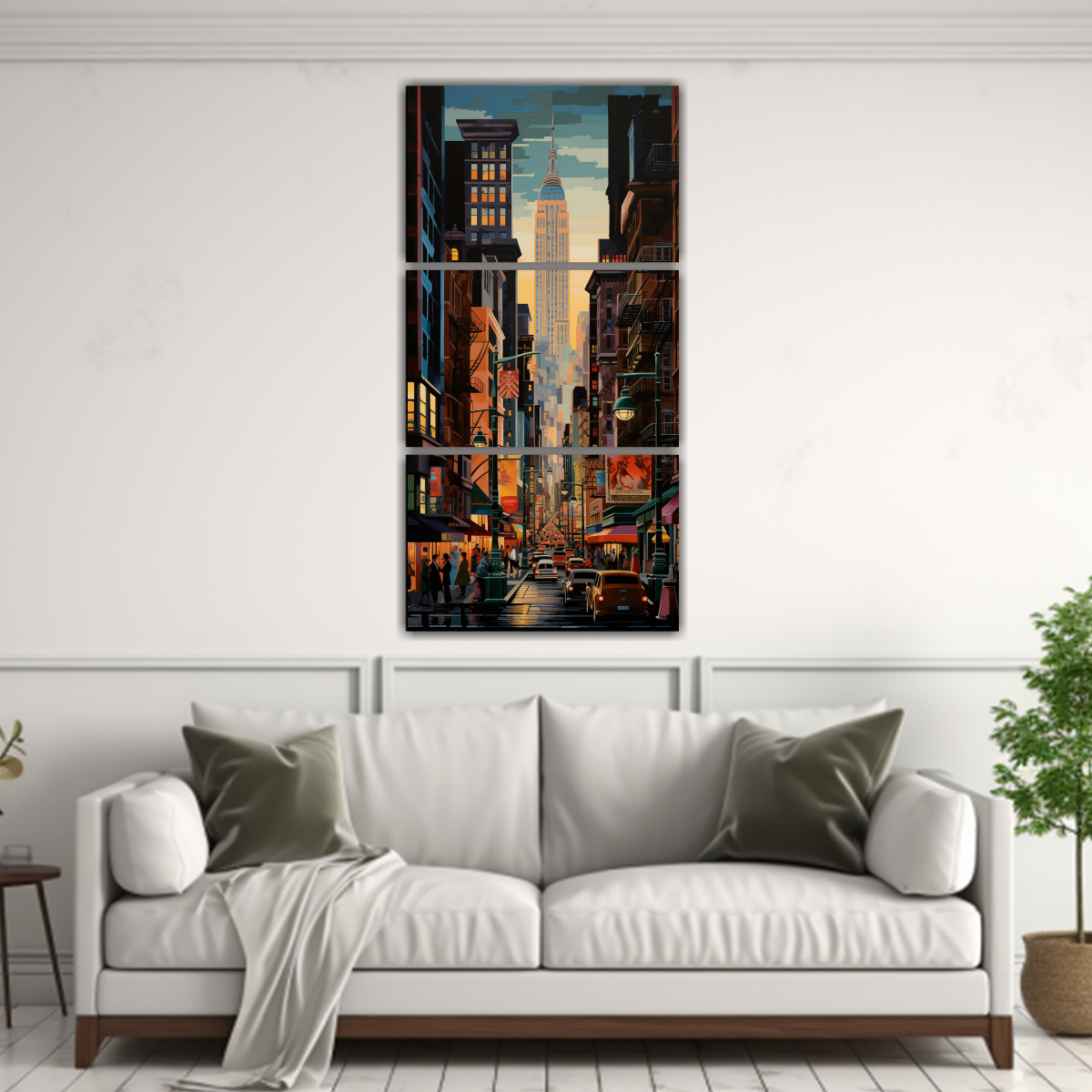 Pinturas De Decoración Temática Abstracta De Tres Telas En Bastidor: El Bullicio De La Nueva York De Los Años 20