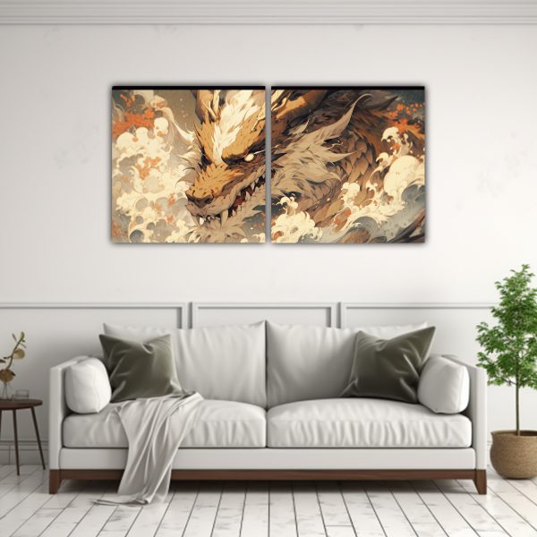 Este cuadro de dragón en blanco y marrón encajaría perfectamente en una sala de estar de estilo moderno o industrial Colócalo sobre un sofá de tonos neutros para crear un contraste visual impactante Complementa con cojines en los mismos tonos para una decoración cohesiva y elegante