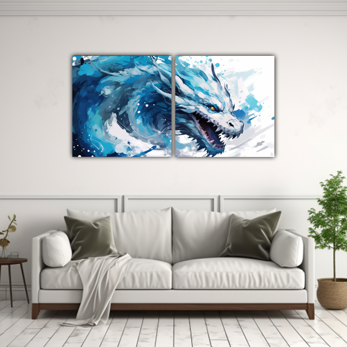 Este cuadro de dragón en blanco y azul es ideal para crear un punto focal en tu sala de estar o estudio Combínalo con muebles en tonos neutros para resaltar su vibrante paleta de colores ¡Impresiona a tus invitados con esta obra de arte única!