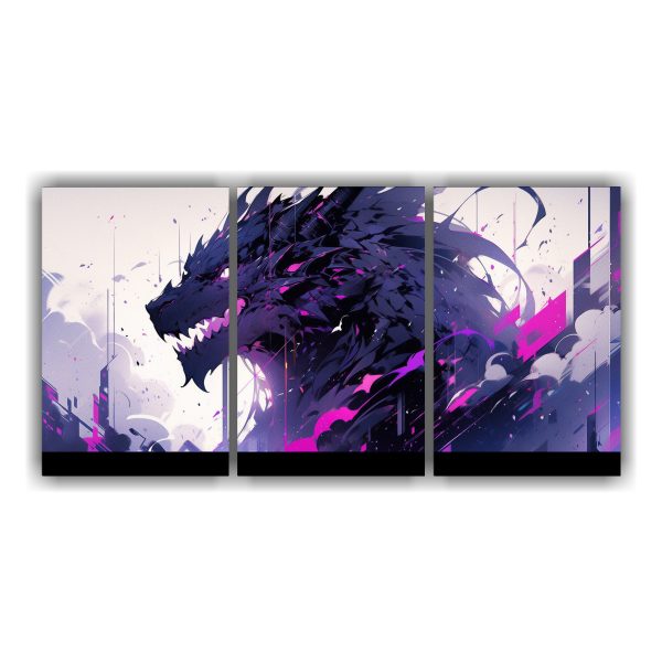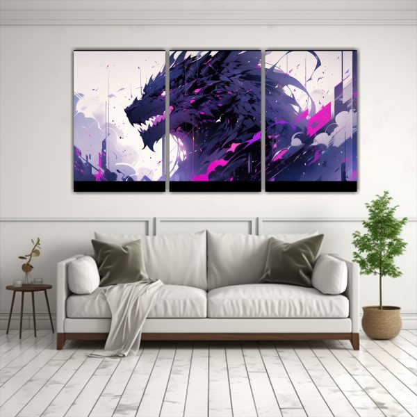 Agrega un toque neonoir a tu espacio con esta cautivadora pintura de dragón en tonos morado y negro Ideal para salas de estar o dormitorios que buscan un estilo único y sofisticado ¡Hazte con ella ya!