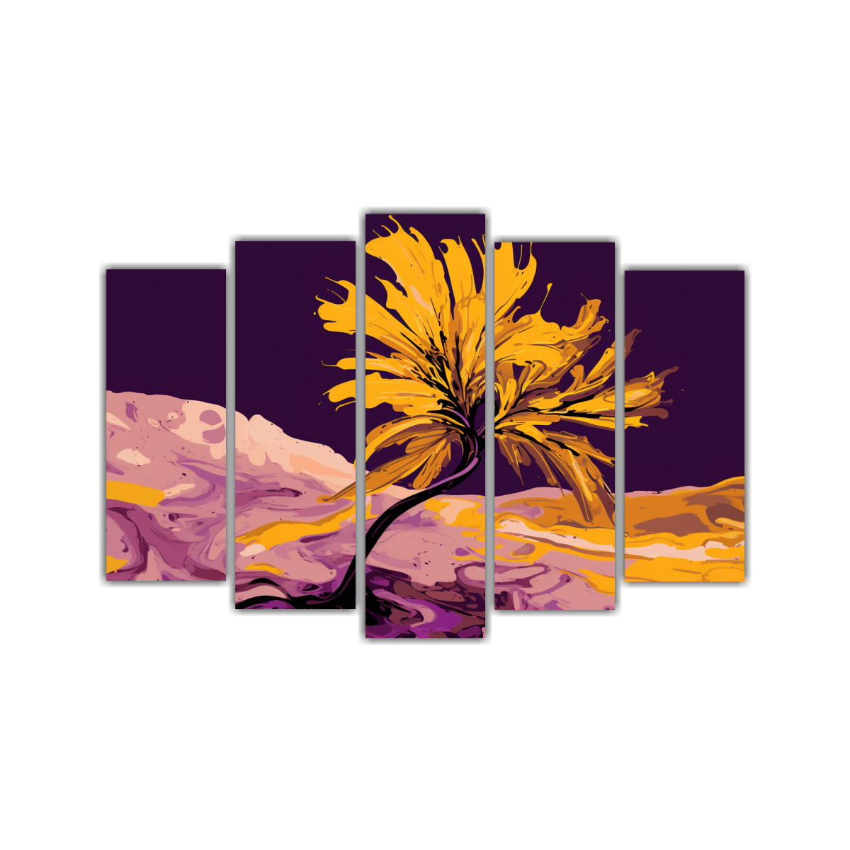 Pinturas De Lienzo Moderno A Joshua Tree En Púrpura Y Oro Ambientación Neonoir
