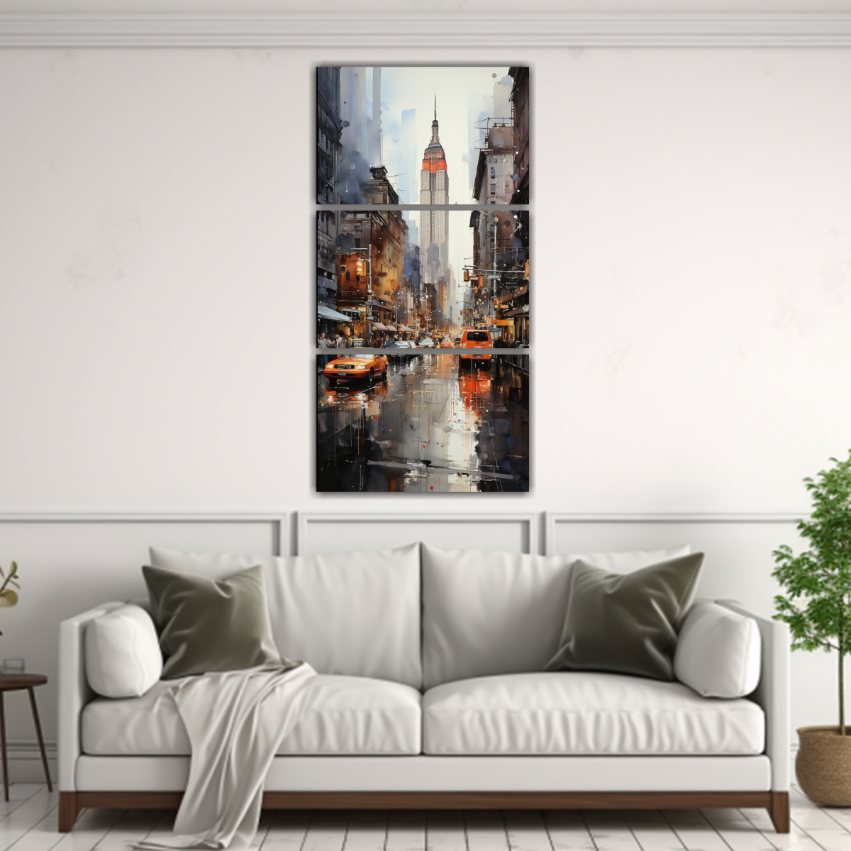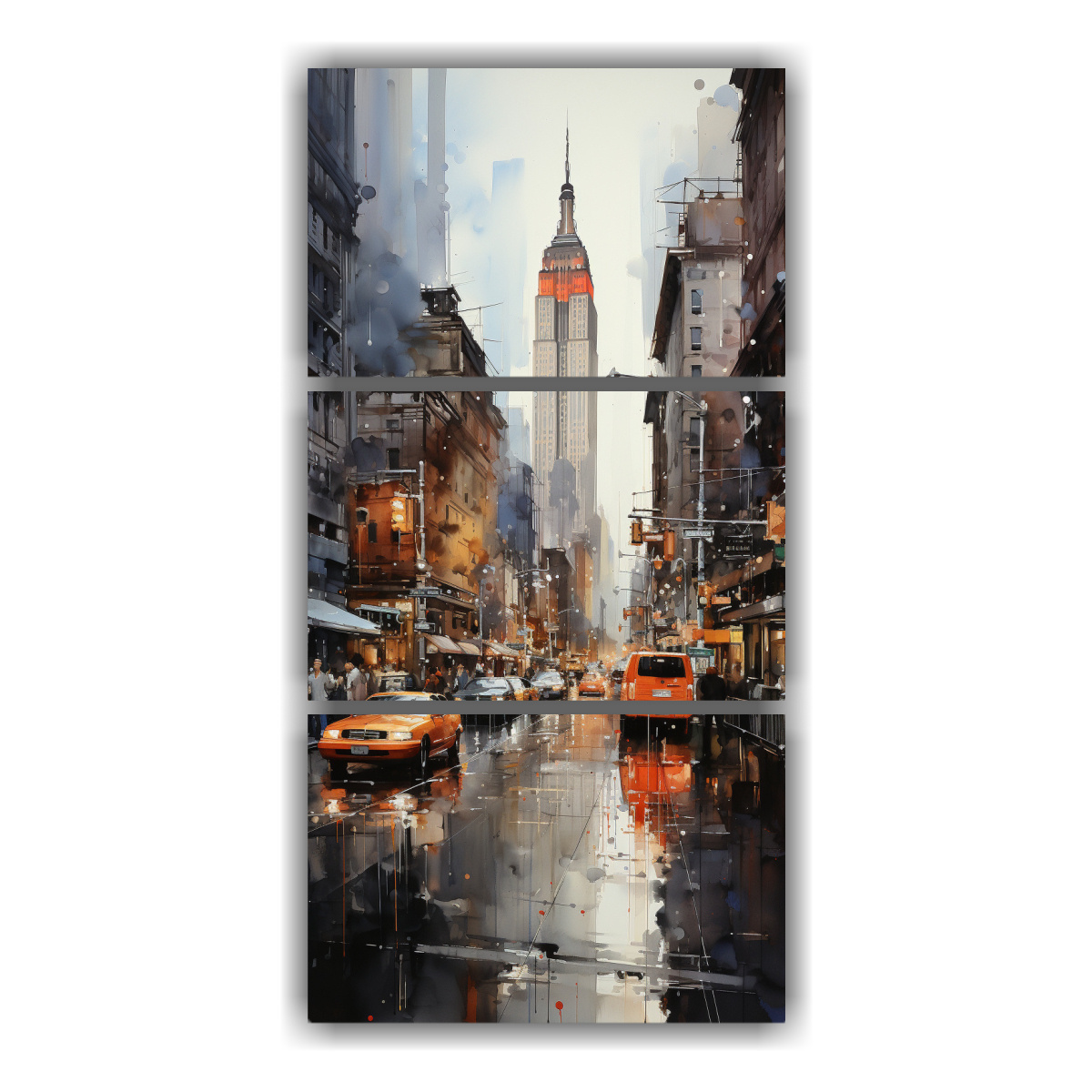 Pinturas De Nueva York Estilo Gris Champagne Con Composición Equilibrada En Tres Lienzos De Tela De Alta Calidad
