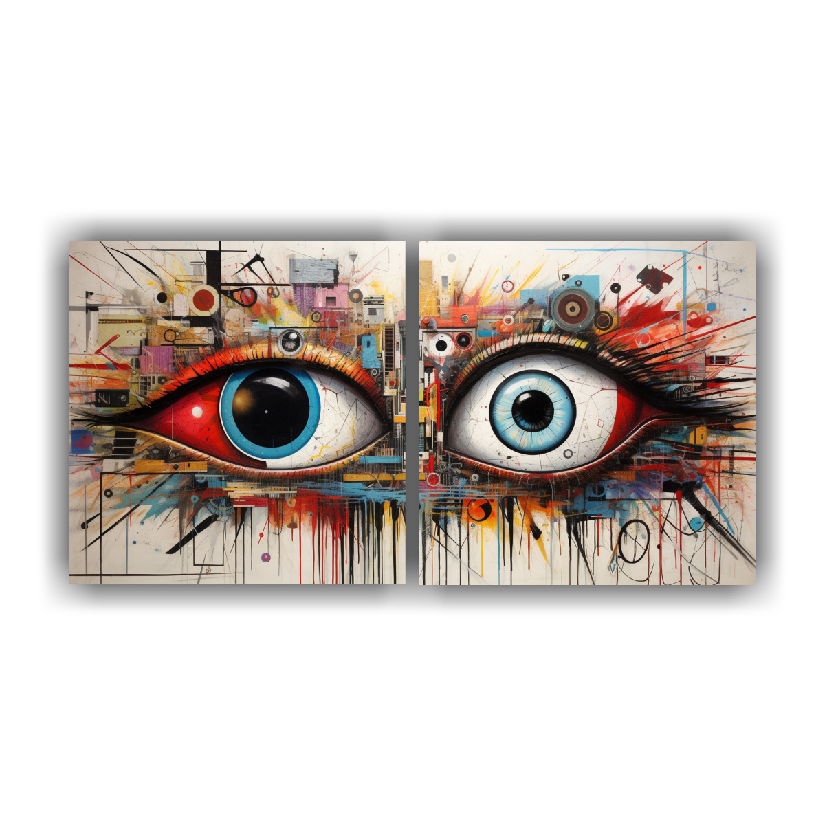 DecoCuadros tiene para ti el set de 2 composiciones de dibujos con riqueza visual en pinturas de ojos abstractos que destacarán en tu decoración de pared Elige entre una variedad de colores como plateado, azul marino grisaceo, carmesí, gris, dorado, beige y menta Confeccionados en tela de alta calidad con bastidores de madera, nuestros cuadros ofrecen la mejor relación calidad-precio del mercado Además, contamos con diseños exclusivos de nuestra tienda y garantizamos entregas rápidas y gratuitas en Santiago, con envíos express a regiones