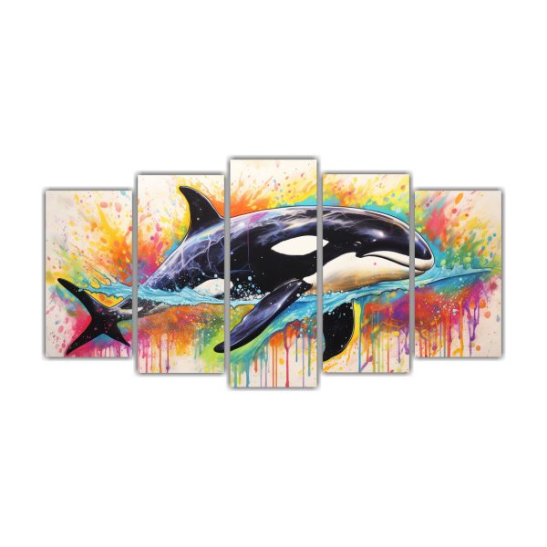Pinturas De Orca En Colores Iridiscentes Y Carbón, Arte De Pared Vanguardista