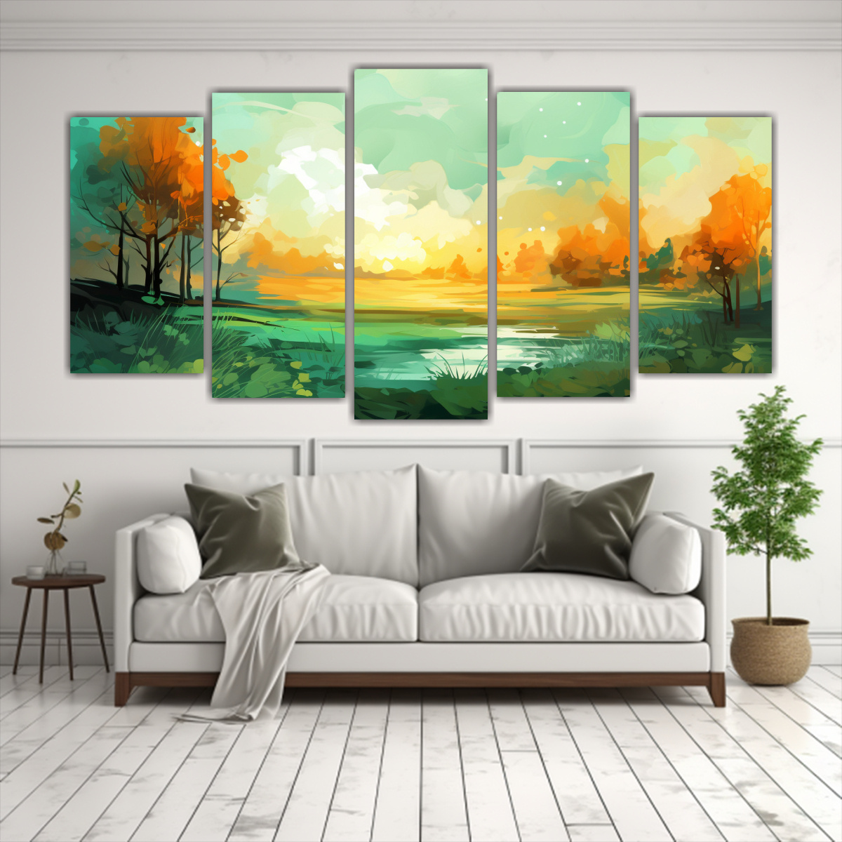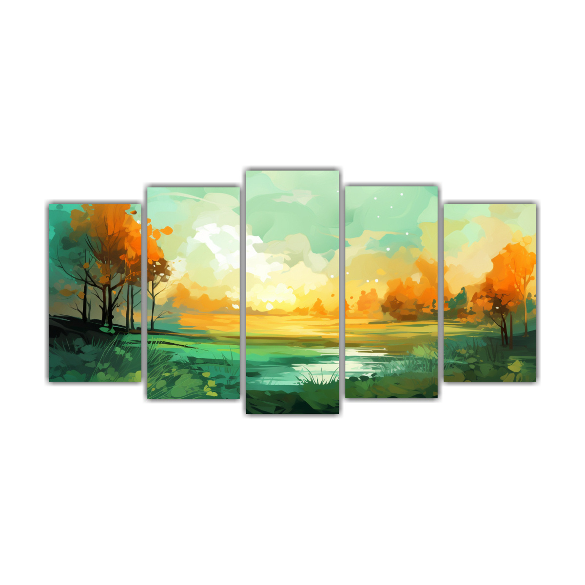Pinturas De Paisaje Otoñal En Tonos Verdes, Estilo Neo Pop Art
