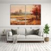 Pinturas De Paisaje Otoñal Estilo Vintage, Simétrico Horizontal, 2 Obras De Arte.