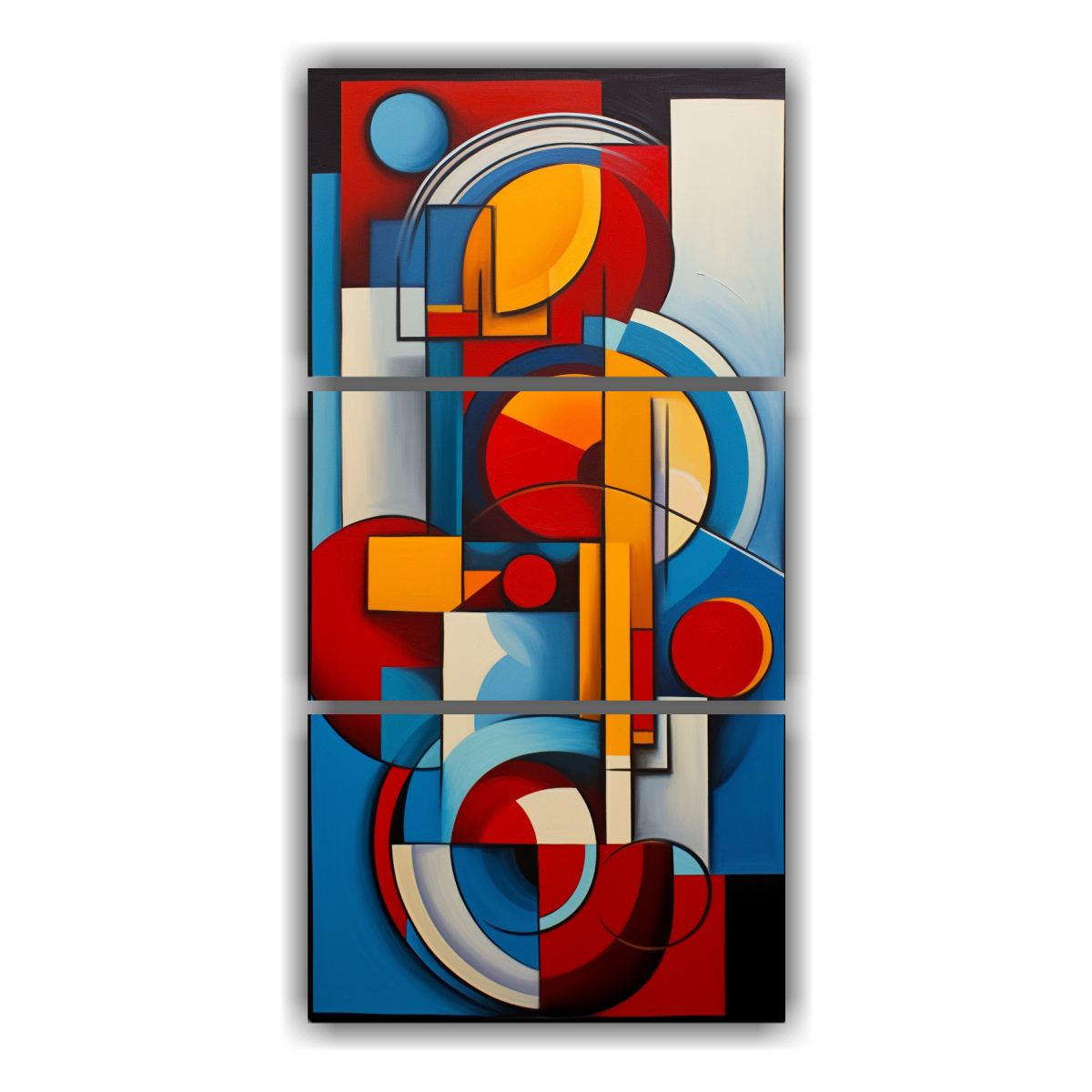 Pinturas De Pared Abstractas Con Elementos Cubistas Y Colores Vibrantes.