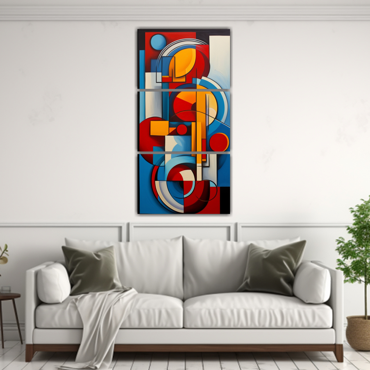 Para resaltar al máximo la belleza y originalidad de este cuadro abstracto, te recomendamos colocarlo en una pared blanca o en un ambiente con tonos neutros para que los colores vibrantes y los elementos cubistas resalten y se conviertan en el centro de atención de la habitación