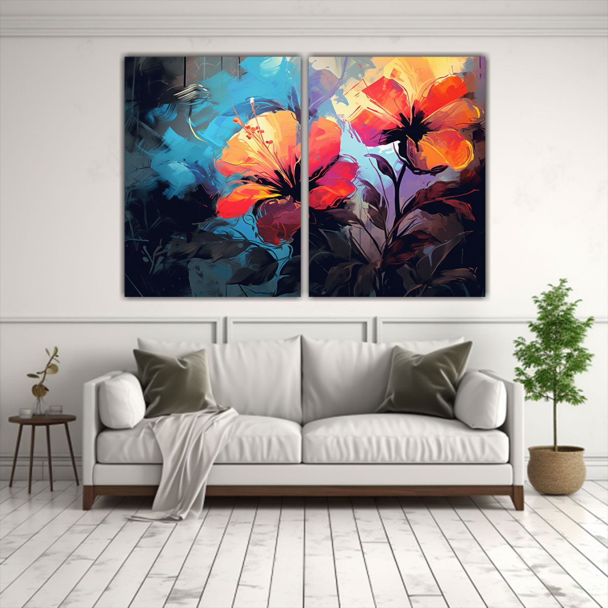 Pinturas De Pared Abstractas Equilibrio Colores Vibrantes Estilo Neonoir En Medi.