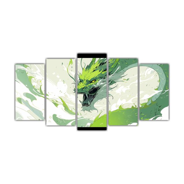 Pinturas De Pared Abstractas: Formación De Dragón En Verde Y Blanco, Ambiente Neonoir
