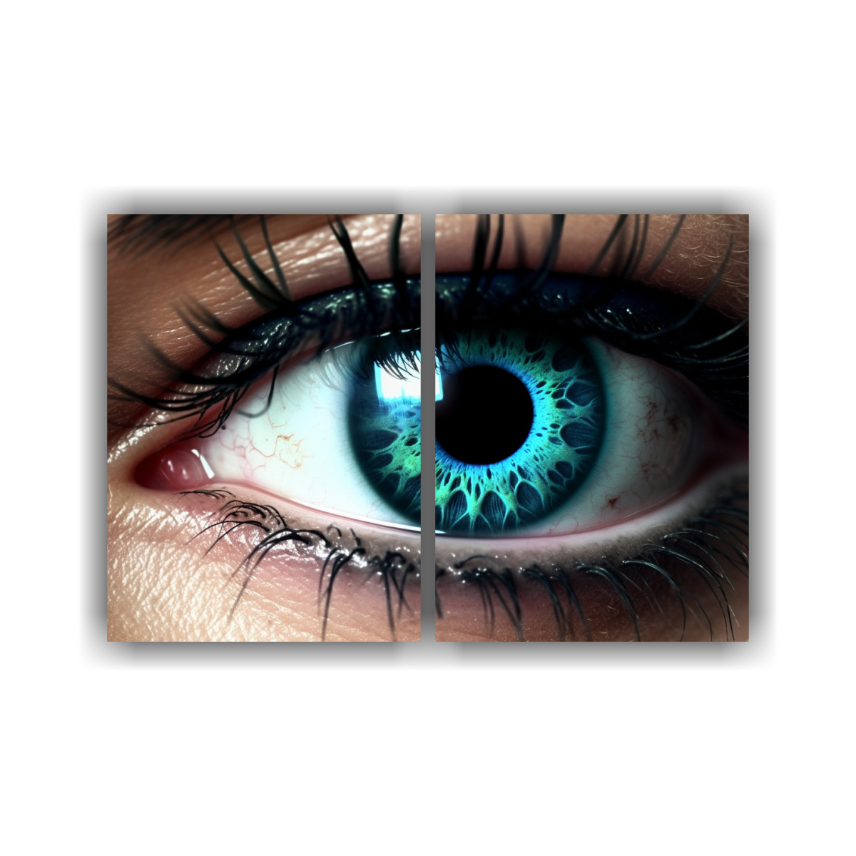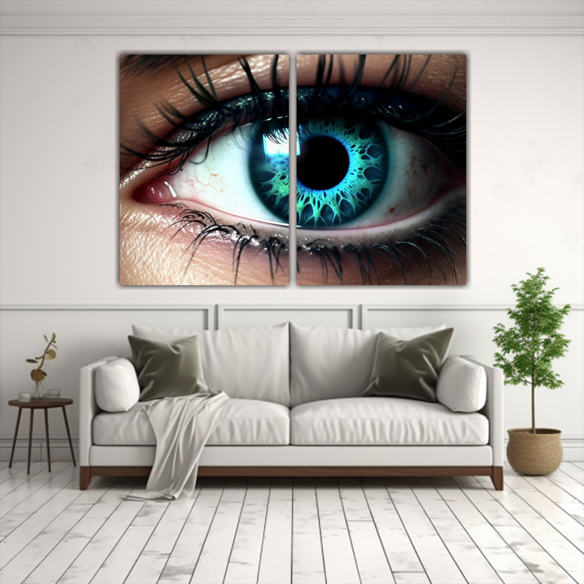 Coloca este cuadro ‘Dos Artes de Pared Diseño Protagonismo eye am’ en tu sala de estar sobre un sofá gris para crear un contraste elegante Complementa con cojines en tonos turquesa y verde azulado para una decoración armoniosa