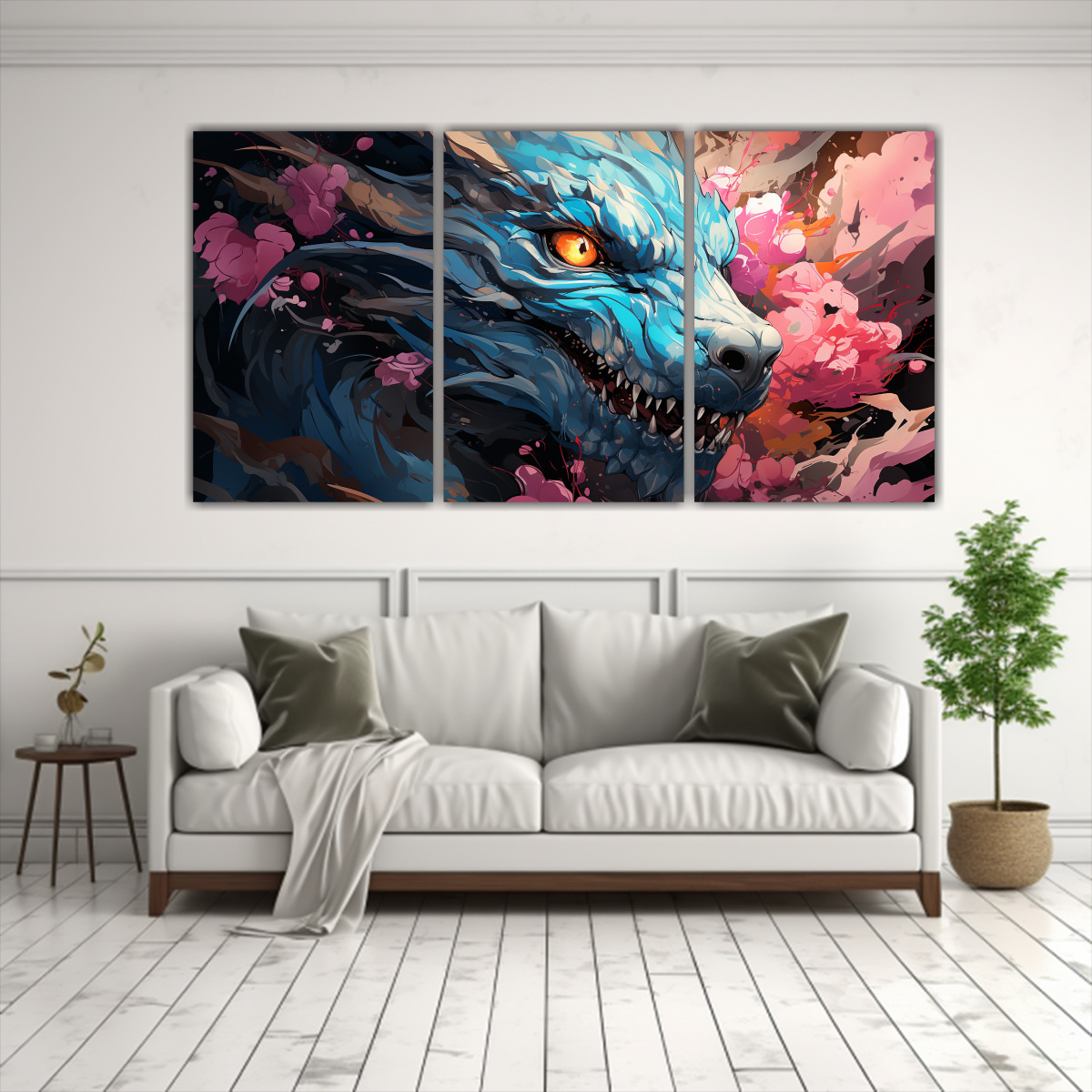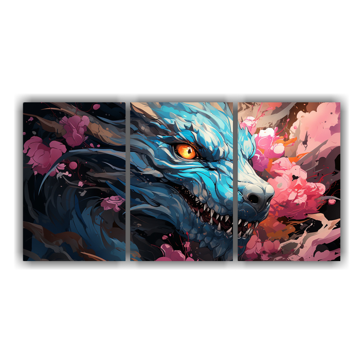 Pinturas De Pared De Alta Calidad En Estilo Neonoir Con Dragón Rosa Y Azul