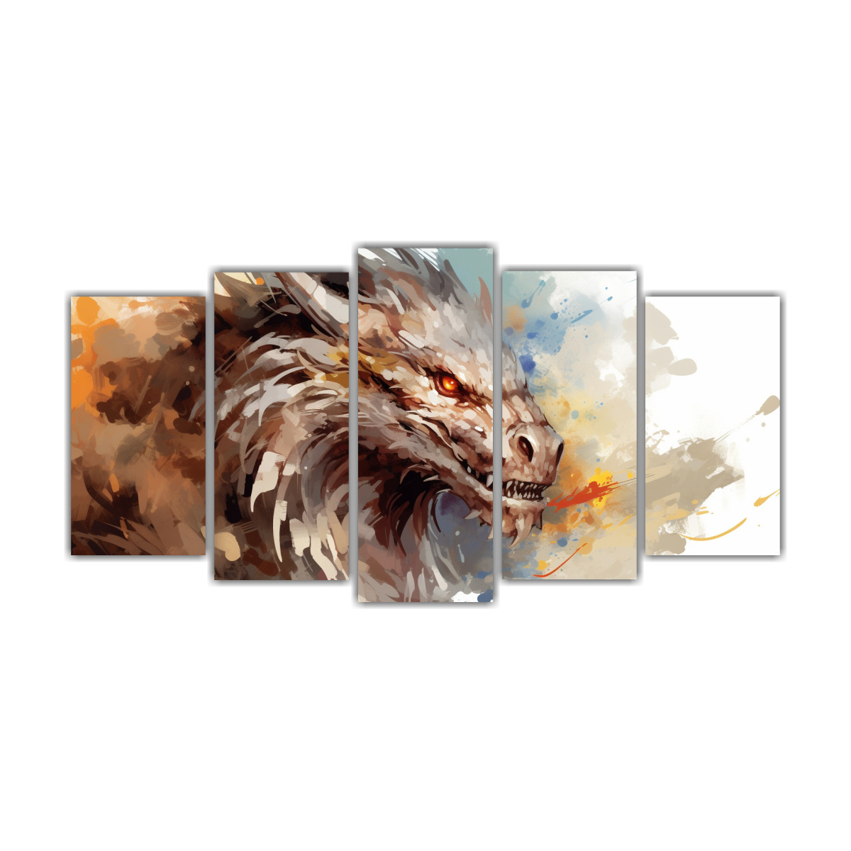 Agrega un toque de misticismo a tu sala de estar con este cuadro de dragón en tonos pastel y marrón Combínalo con muebles de colores neutros para resaltar su belleza y crear un ambiente único y elegante