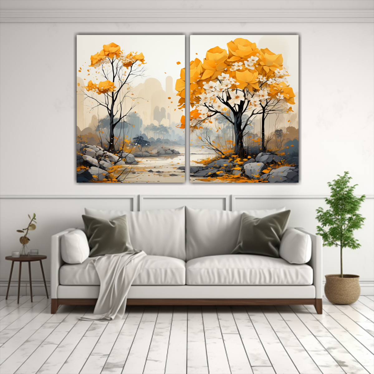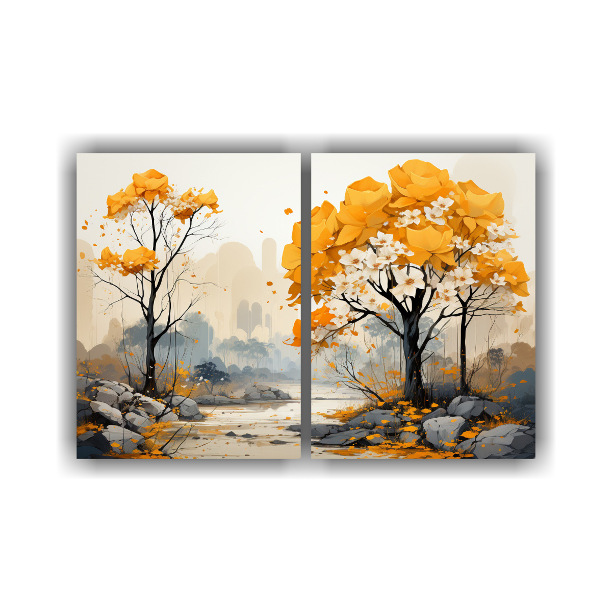 Pinturas De Pared Estrellados De Árboles De Arce En Colores Amarillo Y Blanco Con Atmósfera Neonoir