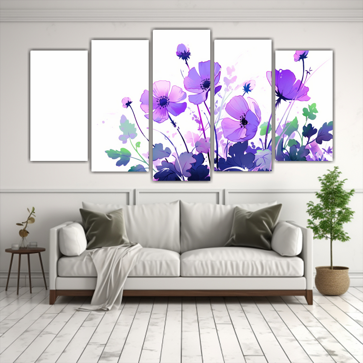Este cuadro sería ideal para decorar una sala de estar o un dormitorio, especialmente si deseas crear una atmósfera elegante y sofisticada Combínalo con muebles de tonos neutros como beige o gris para resaltar los colores morados y crear un ambiente relajante También puedes agregar algunos toques de color menta para darle un toque fresco y moderno ¡Con este cuadro, tu espacio lucirá increíblemente elegante y único!