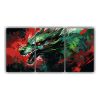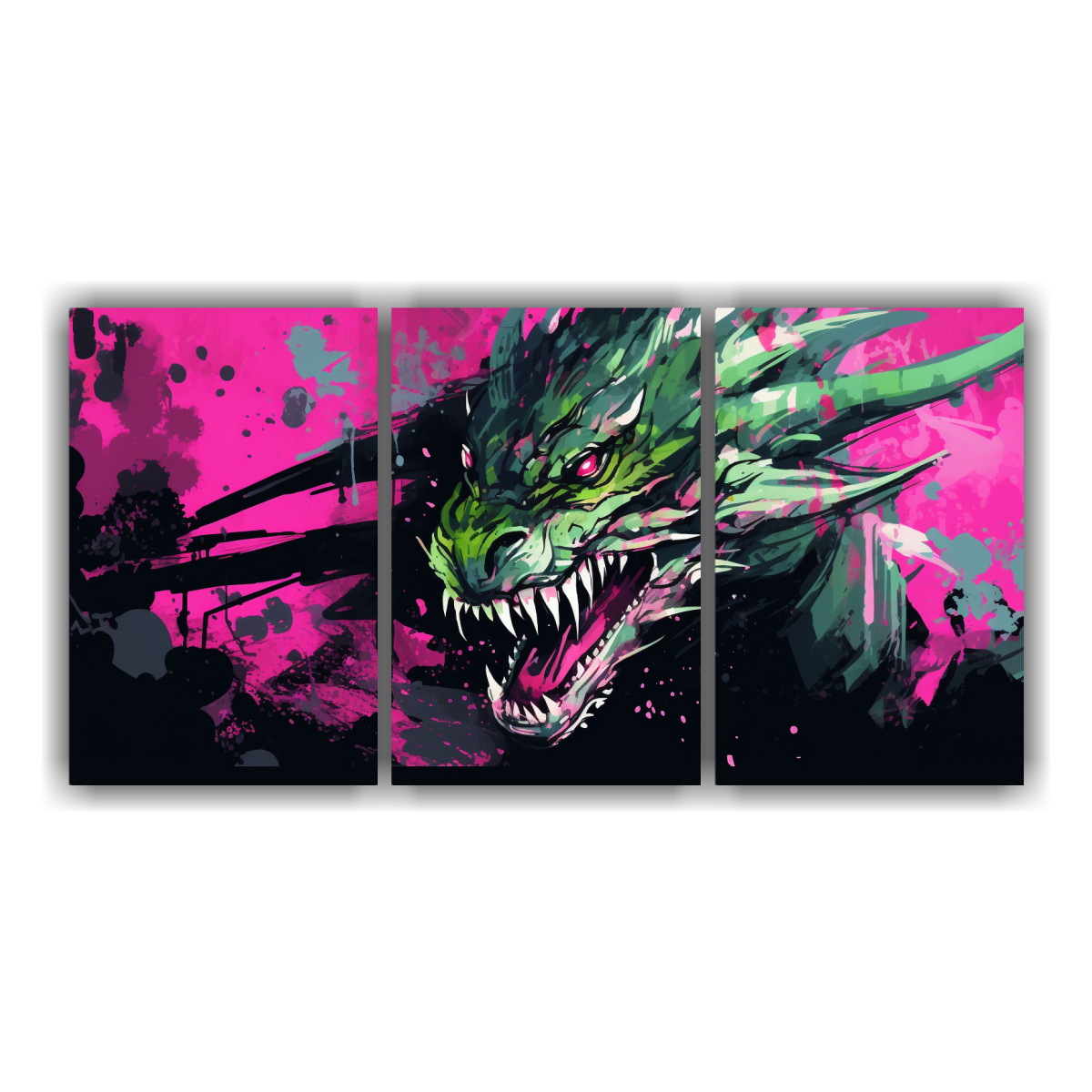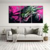Pinturas De Pared Modernas Con Dragón Verde Y Rosa En Ambiente Neonoir.