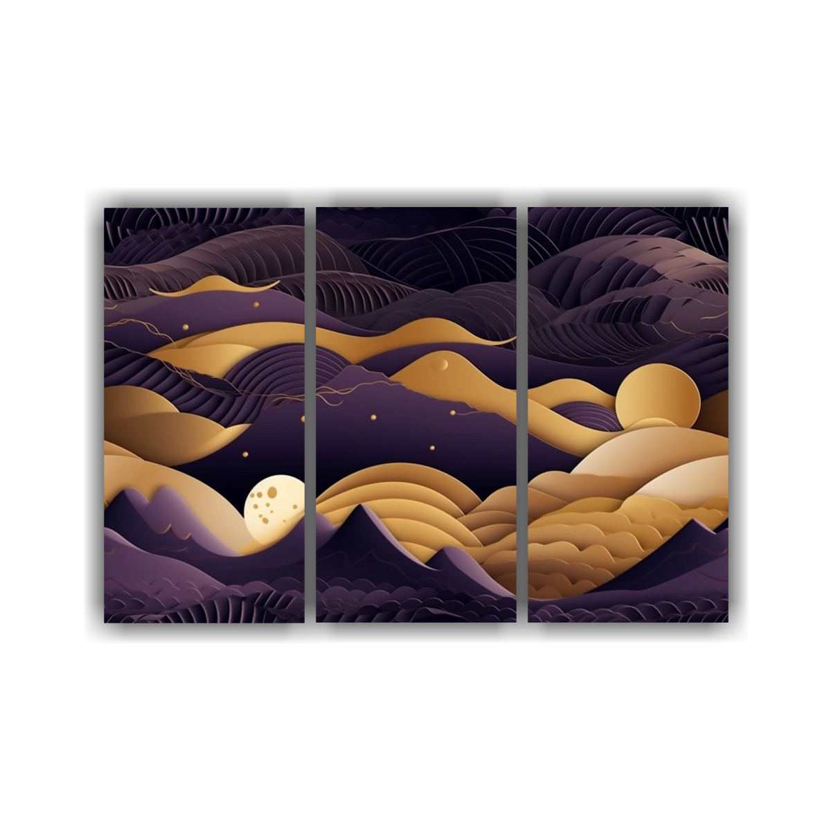 Pinturas De Pared Modernas Con Luna En Estilo Arte De Fibra Oro Y Oscuro