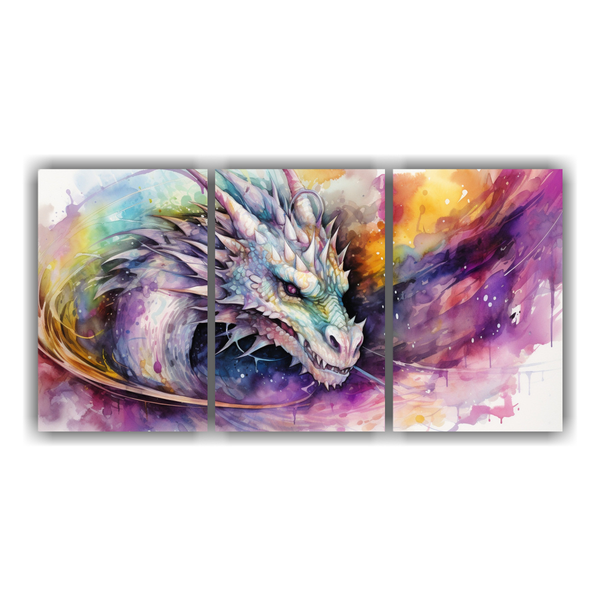 Pinturas De Pared Modernas Estilo Acuarela Dragón Colorido Expresivo.