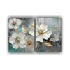 DecoCuadros presenta un set de 2 pinturas de pared surrealistas con flores blancas en blanco y dorado en una combinación de colores plateado, azul marino grisáceo y gris Impresas en tela de alta calidad con bastidores de madera Aporta elegancia y sofisticación a tu hogar con estos cuadros únicos