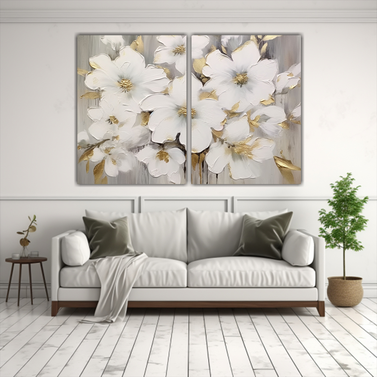Pinturas De Pared Surrealistas De Alta Calidad Con Flores Blancas En Blanco Y Dorado