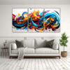 Este cuadro de vanguardia abstracta se vería impresionante en una sala de estar moderna Colócalo sobre un sofá gris o blanco para crear un contraste llamativo Combina el cuadro con cojines en tonos cian y verde azulado para darle un toque fresco y vibrante a la habitación ¡Será el centro de atención de tus invitados!