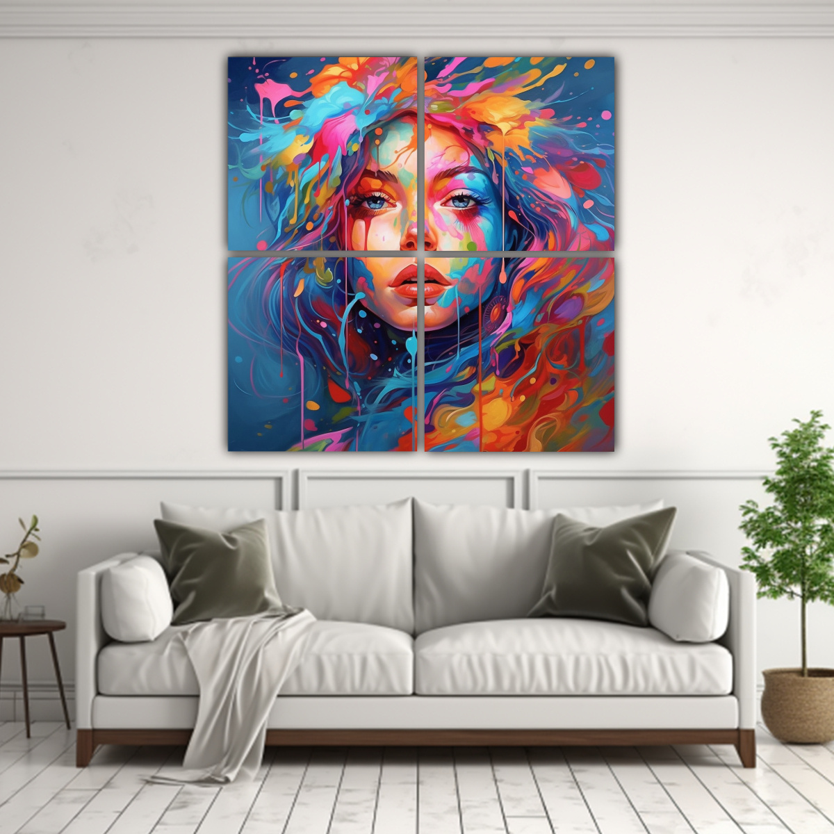 Este cuadro de tela vibrante de alta resolución sería perfecto para dar vida a tu sala de estar Colócalo sobre un sofá de color crema para resaltar los tonos vibrantes, y complementa la decoración con cojines en tonos verdes y azules ¡El resultado será una sala moderna y llena de energía!