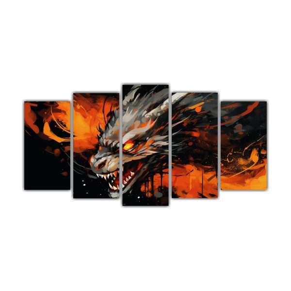 Pinturas Decorativas Abstracción Dragón En Naranja Y Negro.