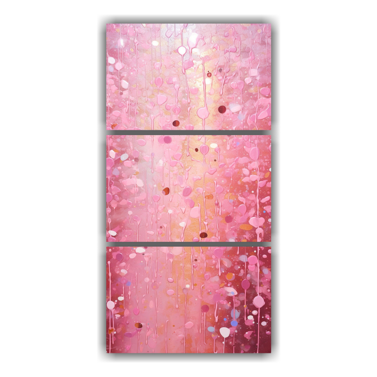 Las Tres Telas en Bastidor Abstracción Majestuosas en el estilo de puntillismo luminoso están impresas en tela de alta calidad y montadas en bastidores de madera Dale un toque de elegancia y sofisticación a tu espacio con esta obra de arte única