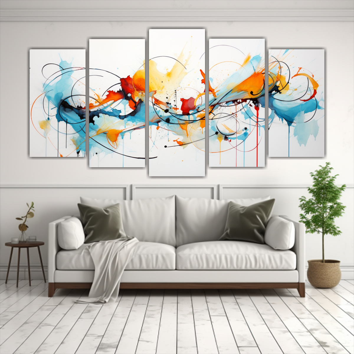 Este set de 5 pinturas acuarelas abstractas es perfecto para decorar una sala de estar moderna Puedes colocarlos en una pared blanca para que los colores resalten y combinen con muebles en tonos neutros También puedes distribuirlos de forma asimétrica para darle un toque de originalidad a tu espacio