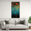 Este cuadro abstracto Monzón en gotas de lluvia en coral, verde azulado, negro, menta, carmesí, chocolate, azul marino grisáceo y plateado es perfecto para darle vida a una sala de estar de estilo moderno Puedes colocarlo sobre un sofá en tonos neutros para crear un contraste llamativo o junto a una pared en tonos blancos o grises para lograr un efecto más minimalista Combínalo con cojines en colores similares y algunos accesorios decorativos en tonos metálicos para completar la estética contemporánea Este cuadro será el centro de atención de tu espacio y sin duda impresionará a tus invitados