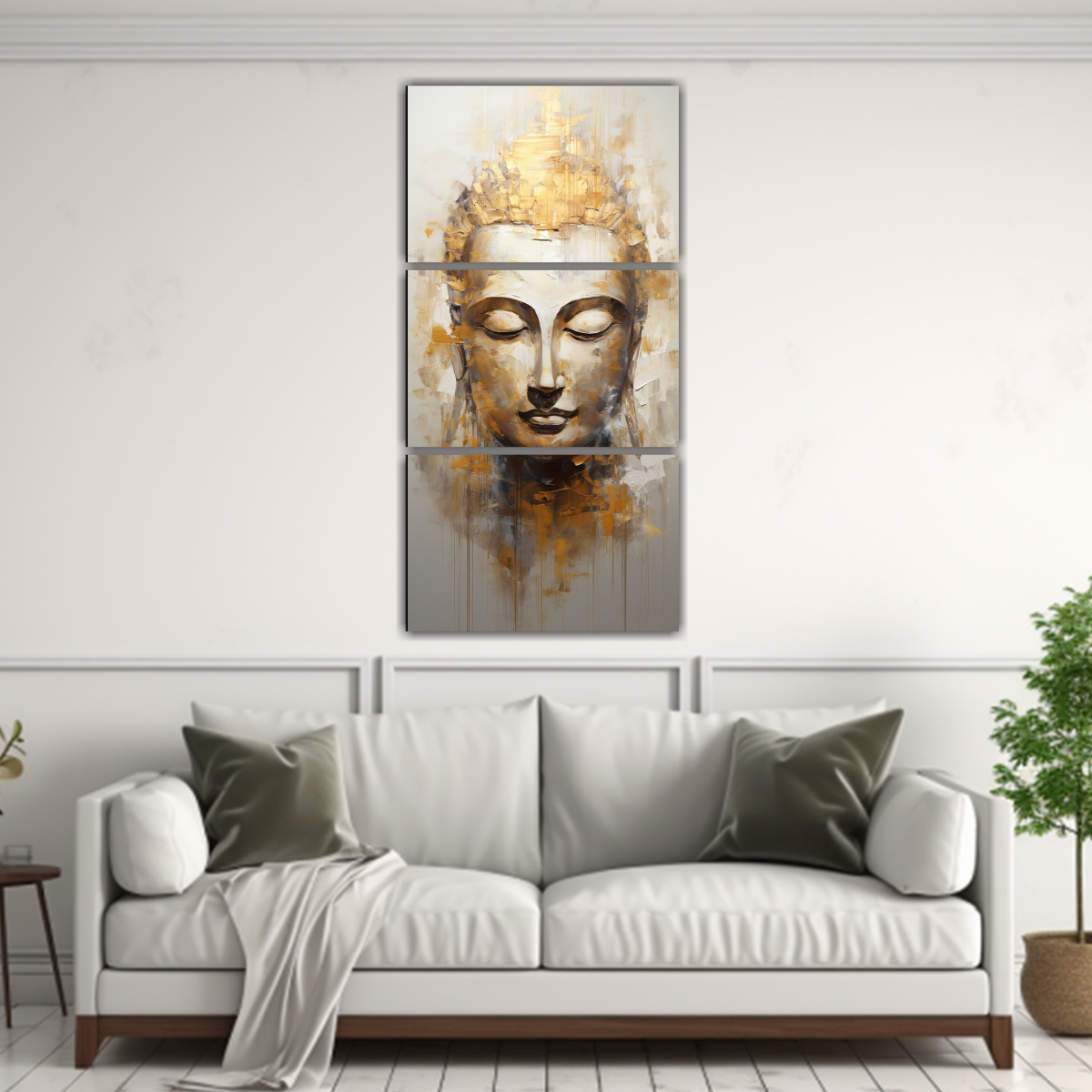 Este cuadro abstracto de flores y rostro de Buda dorado y blanco estilo mod sería ideal para decorar un salón o comedor moderno Combina perfectamente con muebles en tonos neutros, como beige o gris, y añade un toque de elegancia y espiritualidad al espacio Colócalo sobre un sofá o una mesa de centro para crear un punto focal y darle un toque artístico a la habitación