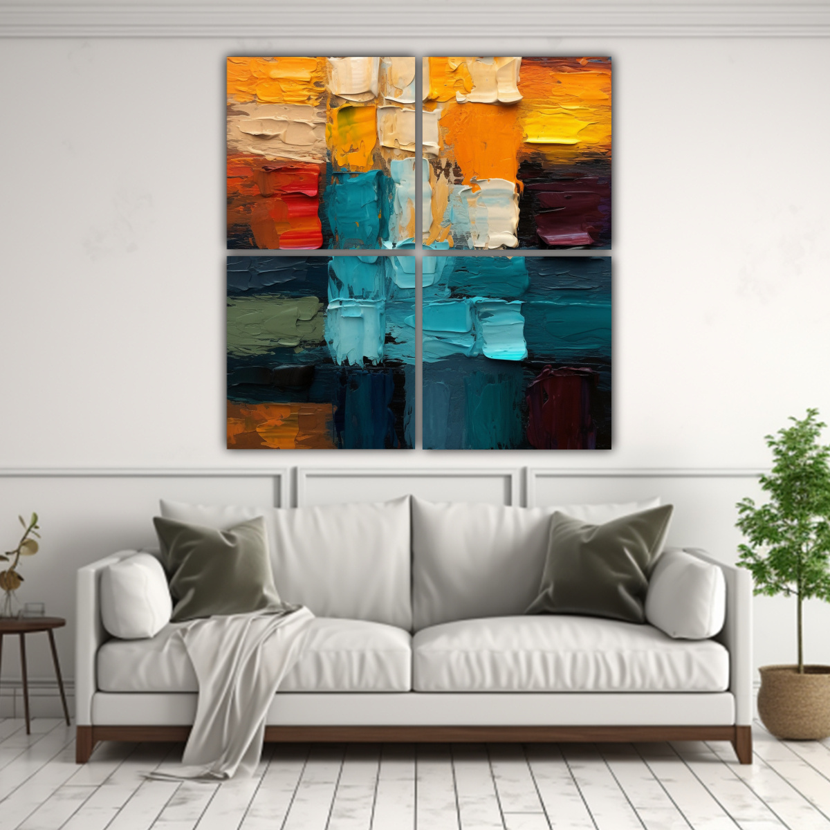 Este cuadro abstracto con paleta de colores vibrantes en capas múltiples sería ideal para decorar tu sala de estar Colócalo sobre un sofá en tonos neutros para crear un contraste llamativo y energizante Combínalo con cojines en los colores del cuadro y complementa la decoración con elementos en plateado para darle un toque de elegancia ¡Dale vida a tu hogar con esta obra de arte única!