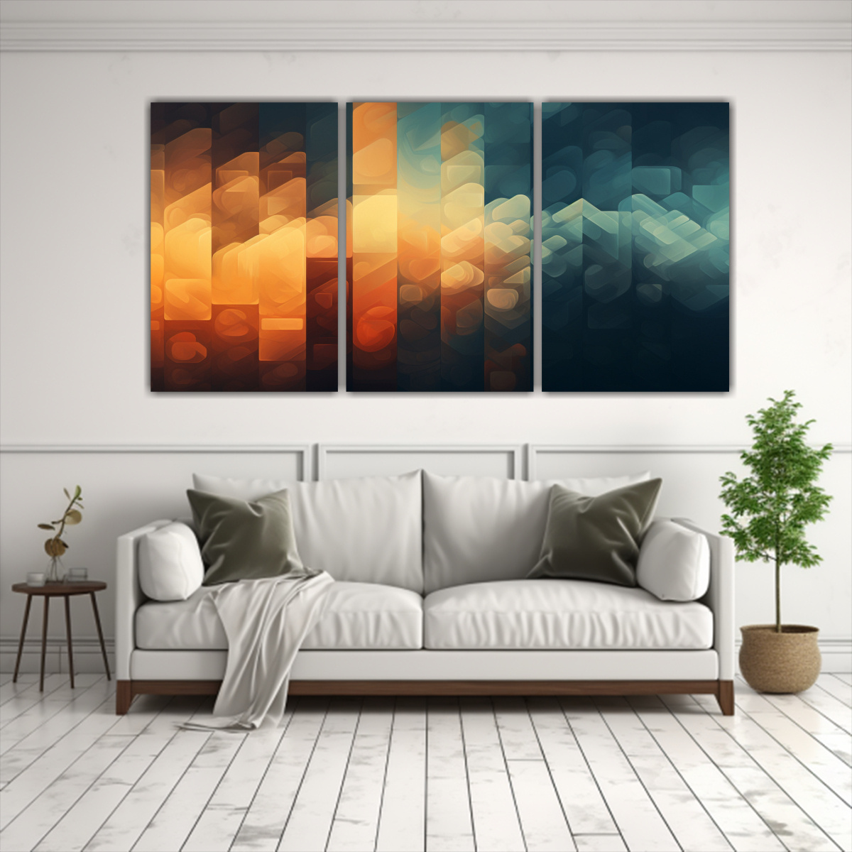 Este cuadro de texturas y gradientes en capas sería perfecto para decorar una sala de estar moderna Colócalo sobre un sofá de color blanco o gris claro para resaltar los tonos coral, azul marino grisáceo, gris y chocolate del cuadro Agrega cojines en tonos plateados, carmesí y dorados para complementar la paleta de colores El resultado será una combinación elegante y sofisticada que transformará tu sala de estar en un espacio acogedor y lleno de estilo