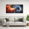 Este cuadro de las Galaxias giratorias sería ideal para decorar una sala de estar o un estudio, ya que sus colores brillantes como el Coral, el Azul Marino grisaceo y el Turquesa le darán vida y energía al espacio Puedes combinarlo con muebles en tonos neutros como el Gris y el Plateado para lograr una armonía visual ¡Atrévete a darle un toque moderno y único a tu hogar!