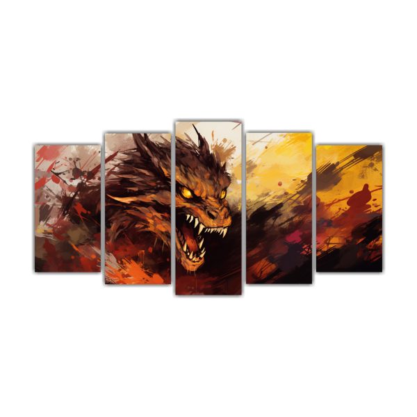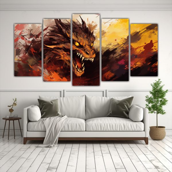 Pinturas Decorativas Abstractas De Baño Con Un Dragón En Tonos Marrón Y Amarillo