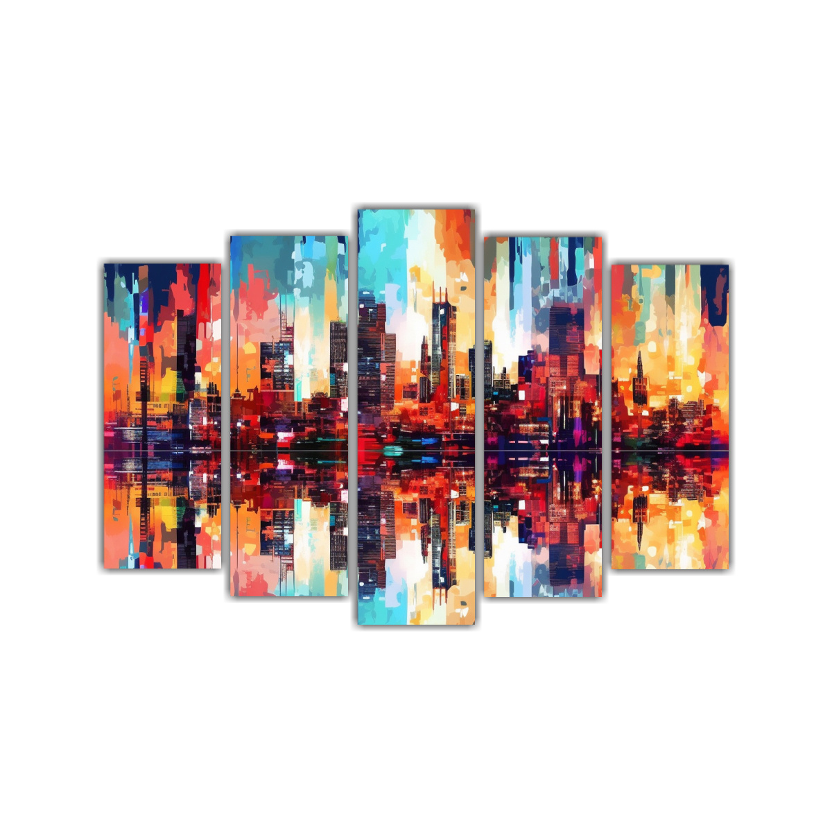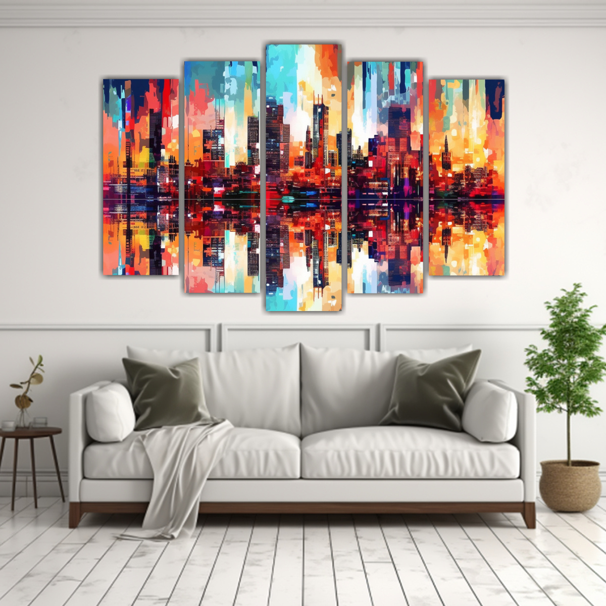 Pinturas Decorativas Abstractas De Ciudad Colorida AI Sobre Lienzo.