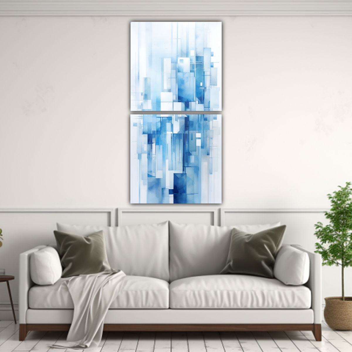 Pinturas Decorativas Abstractas De Ciudad En Estilo Azul Y Blanco Set 2 Canvas Estilo Galería