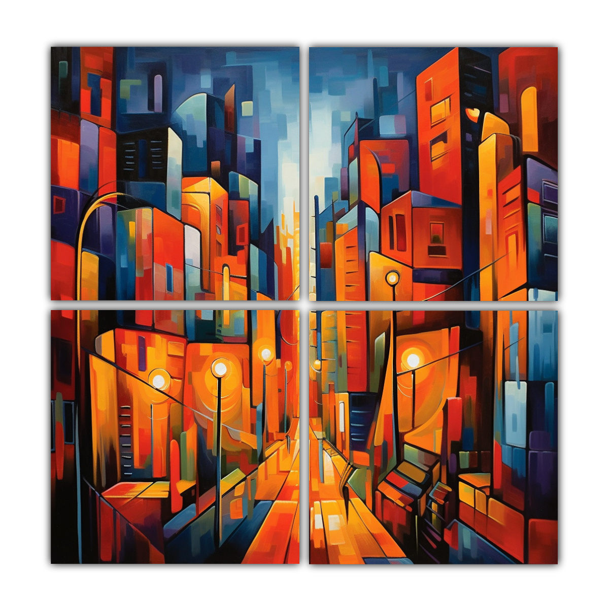 Pinturas Decorativas Abstractas De Escena Cálida En Cuadriptico