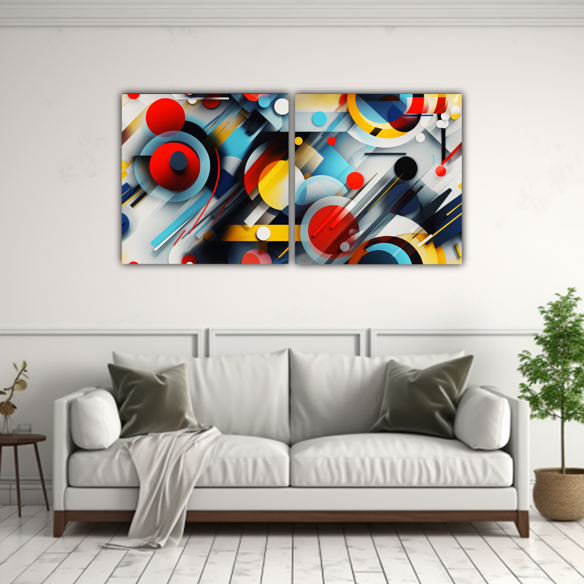 Pinturas Decorativas Abstractas De Kandinsky Con Iluminación Intensa En Primarios Vibrantes
