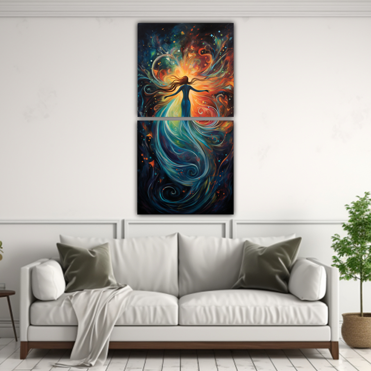 Recomendamos colocar el cuadro abstracto Danza de luces del norte en una pared blanca o neutra, para que los colores resalten y creen un contraste impactante Este cuadro es perfecto para oficinas modernas y minimalistas, y combina muy bien con muebles en tonos grises o blancos Agrega un toque de elegancia y sofisticación a tu espacio de trabajo con esta obra de arte única