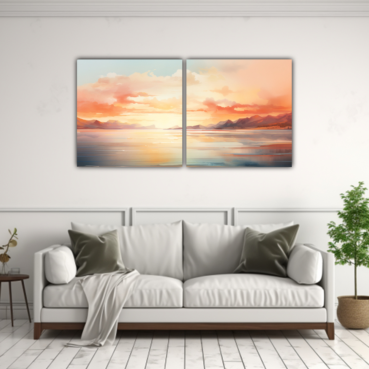 Decora tu hogar con los cuadros decorativos abstractos de reinterpretación de un atardecer costero de DecoCuadros Disponibles en plateado, dorado, coral, gris, beige y lila, estos cuadros impresos en tela de alta calidad con bastidores de madera añadirán un toque de sofisticación a tus espacios Aprovecha nuestra excelente calidad y precios económicos en cuadros con diseños exclusivos Entregas rápidas y gratuitas en Santiago y envíos express a regiones