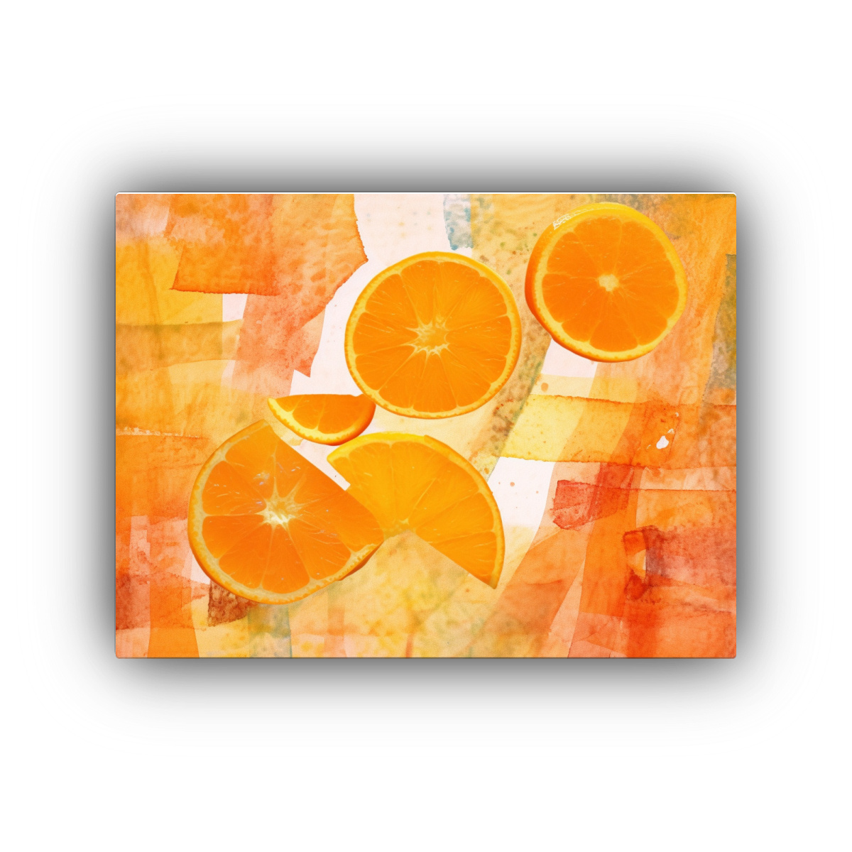 Este cuadro abstracto de rodaja de naranja en Galería Fantasía luciría espectacular en la sala de estar, creando un ambiente cálido y acogedor Combínalo con muebles en tonos neutros para resaltar sus colores vibrantes y añadir un toque de elegancia a la decoración