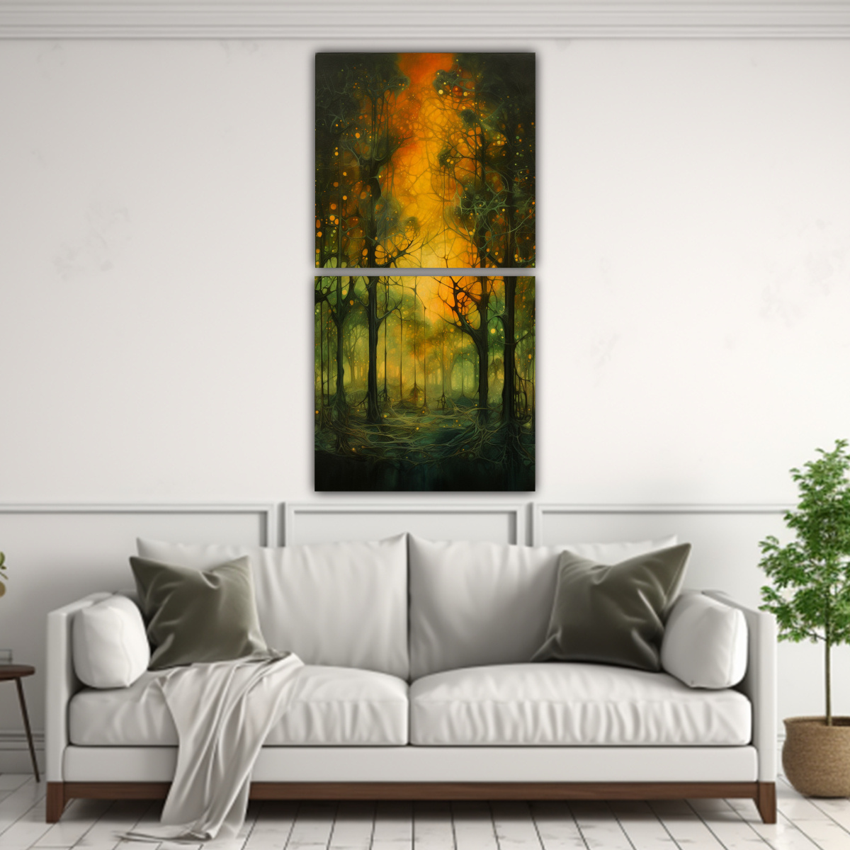 Pinturas Decorativas Abstractas De Susurros Ancestrales En Un Bosque Antiguor.
