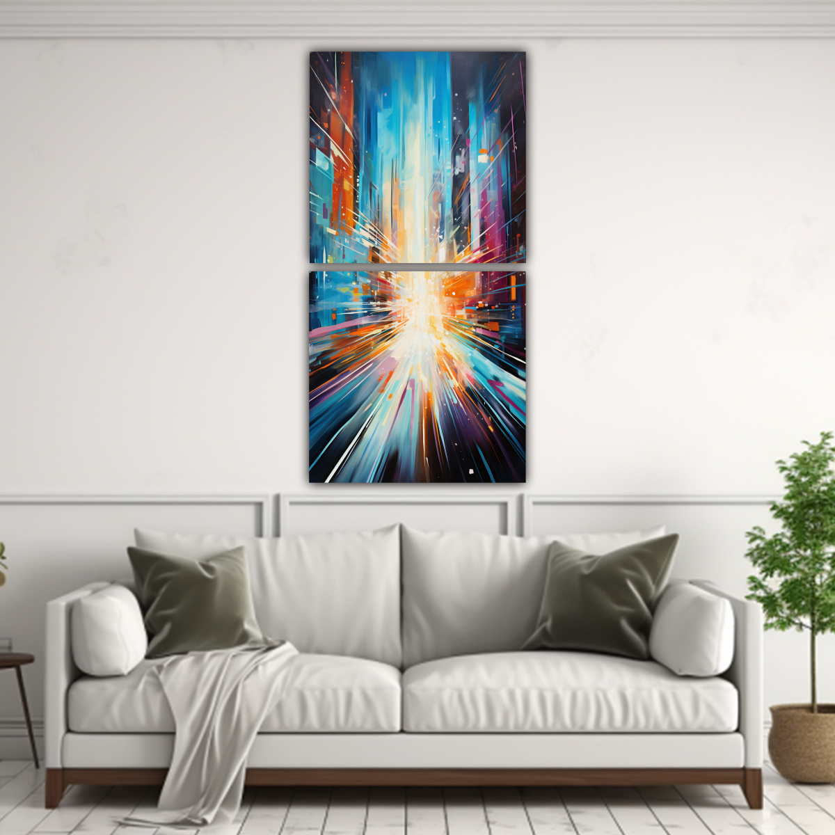 Este cuadro sería perfecto para decorar una sala de estar moderna, combinando con muebles en tonos grises y azules para crear un ambiente elegante y sofisticado