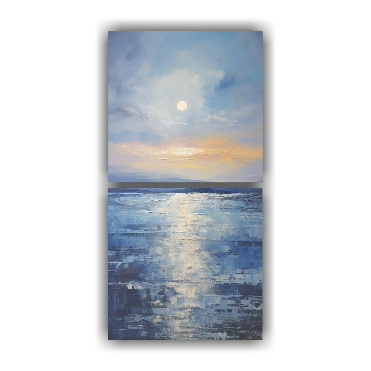 Pinturas Decorativas Abstractas De Un Mar Nocturno Con Dos Cuadros Cálidos De Motivo Etéreo