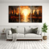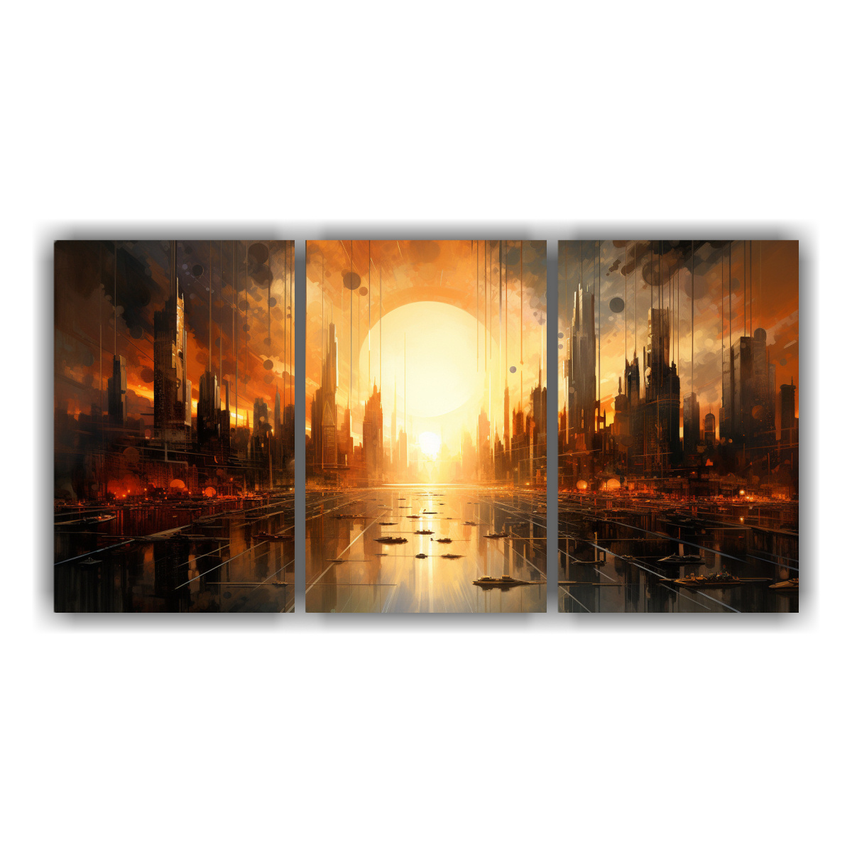 Este cuadro abstracto de una ciudad bulliciosa en tres paneles es perfecto para decorar tu sala de estar o tu estudio Colócalo sobre un sofá en tonos neutros o sobre un escritorio en una habitación con detalles dorados Su diseño innovador y dinámico le dará un toque moderno y vibrante a tu espacio