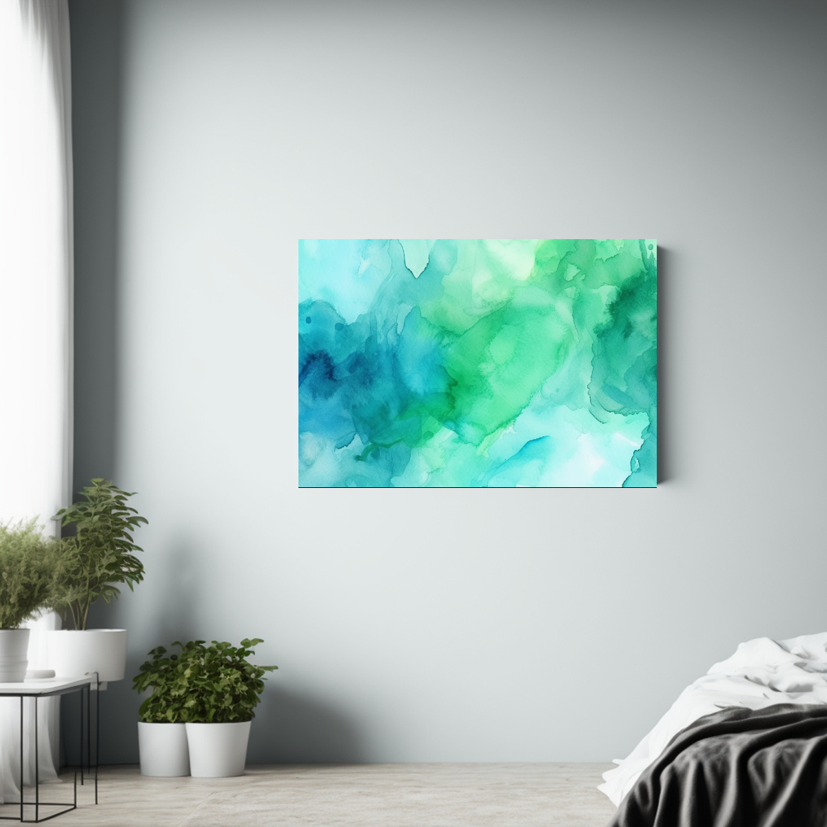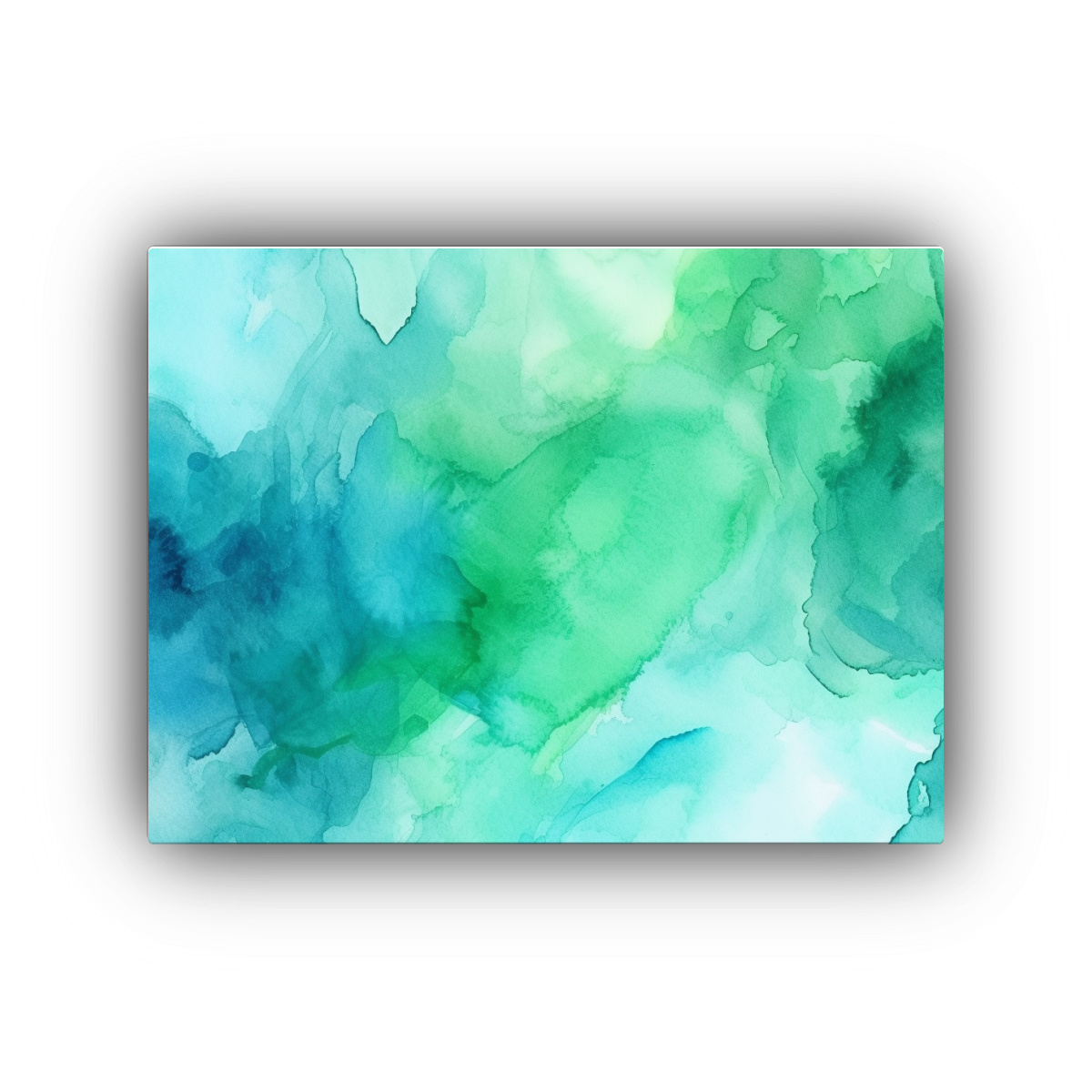 Este cuadro abstracto en acuarela verde y azul sería ideal para colocar en el salón, creando un ambiente fresco y moderno Combínalo con muebles en tonos neutros para resaltar su belleza y darle un toque sofisticado a la decoración de tu hogar